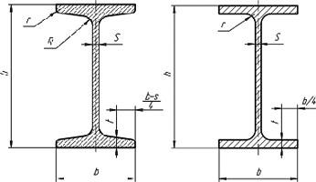 Теоретический вес, вес метра погонного балки двутавровой с уклоном внутренних граней полок (ГОСТ 8239-89)