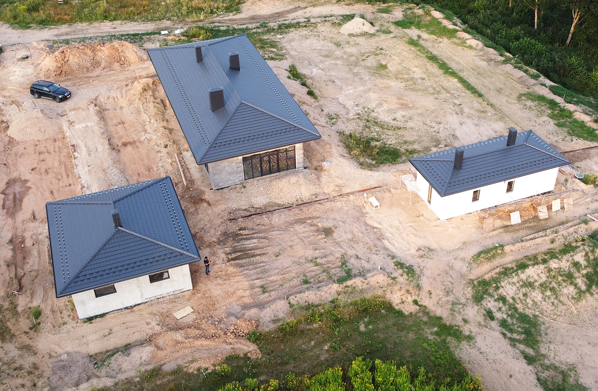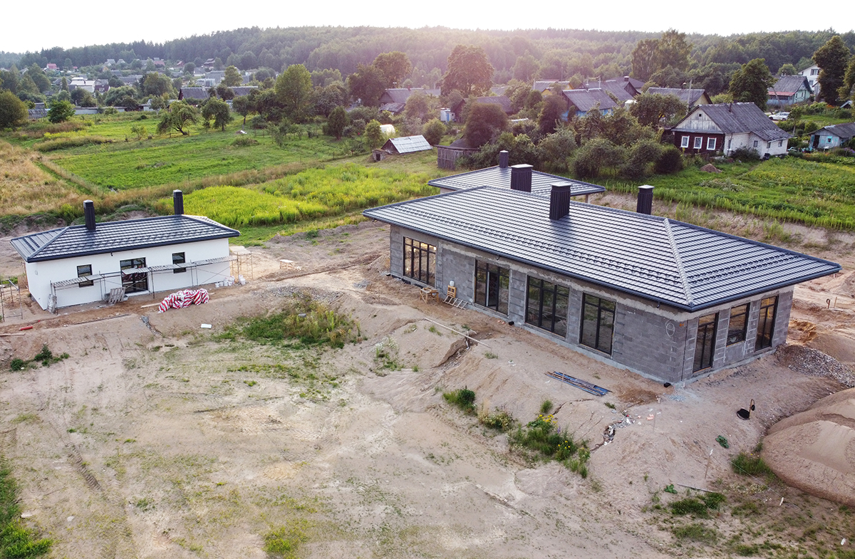 на основании пожеланий заказчика и разработанного проекта смонтировать кровлю на бане, гараже и жилом доме.