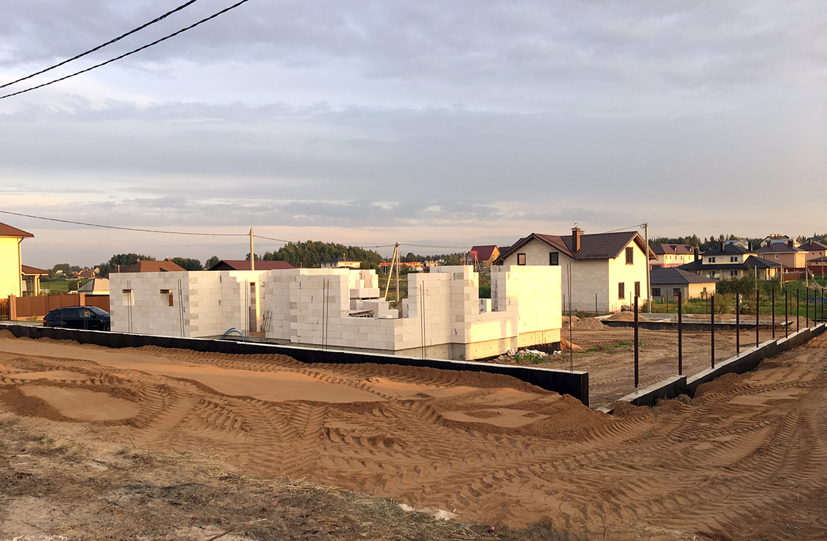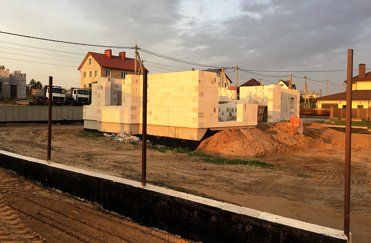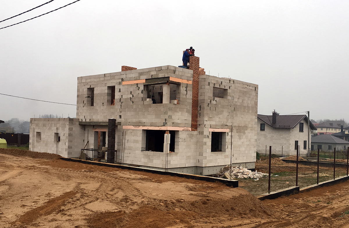 заложить свайно-ростверкового фундамент, возвести стены из газосиликатных блоков, смонтировать кровлю